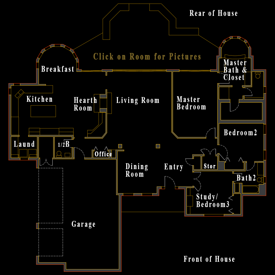 See Pictures of the Living Room See Pictures of the Breakfast Room See Pictures of the Hearth Room See Pictures of the Kitchen See Pictures of the Laundry See Pictures of the Half Bath See Pictures of the Master Bedroom See Pictures of the Master Bath and Closet See Pictures of the Bedroom 2 See Pictures of the Bathroom 2 See Pictures of the Study / Bedroom 3 See Pictures of the Dining Room See Pictures of the Entry See Pictures of the Garage See Pictures of the Front Yard See Pictures of the Back Yard See Picture of the Office-Storage Areas See Picture of the Storage Closet